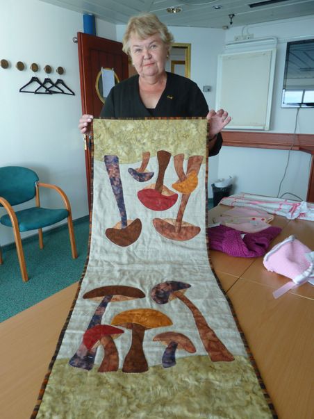 Kolmenneksi äänestettiin espoolaisen Eila Eskelisen värikylläinen sieniaiheinen tilkkutyö.