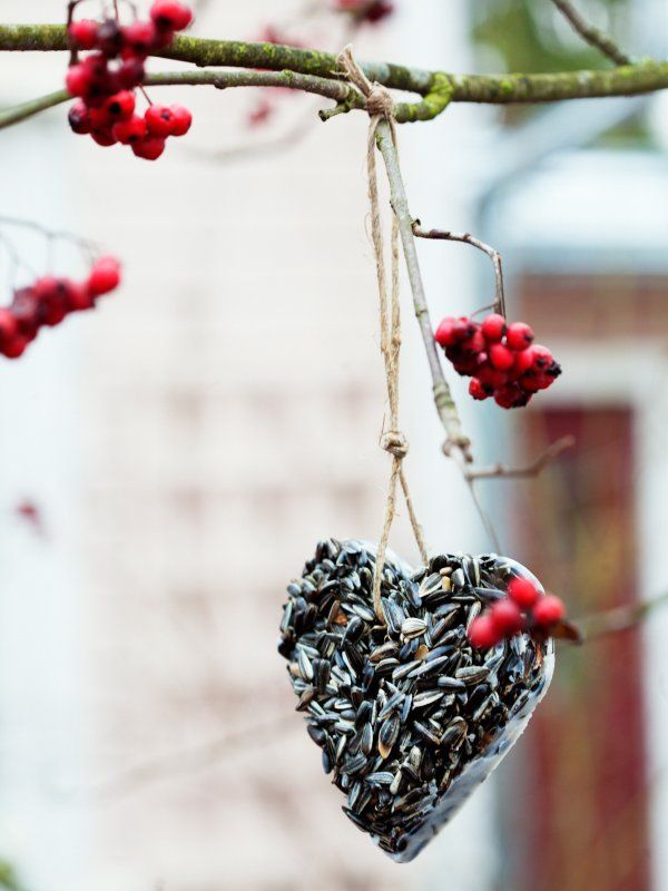 Pihapuussa ruokailevia lintuja on mukava katsella. Tee niille tuhdit sapuskat kookosrasvasta ja siemenistä. Ripusta ne sitten pihapuuhun roikkumaan.
