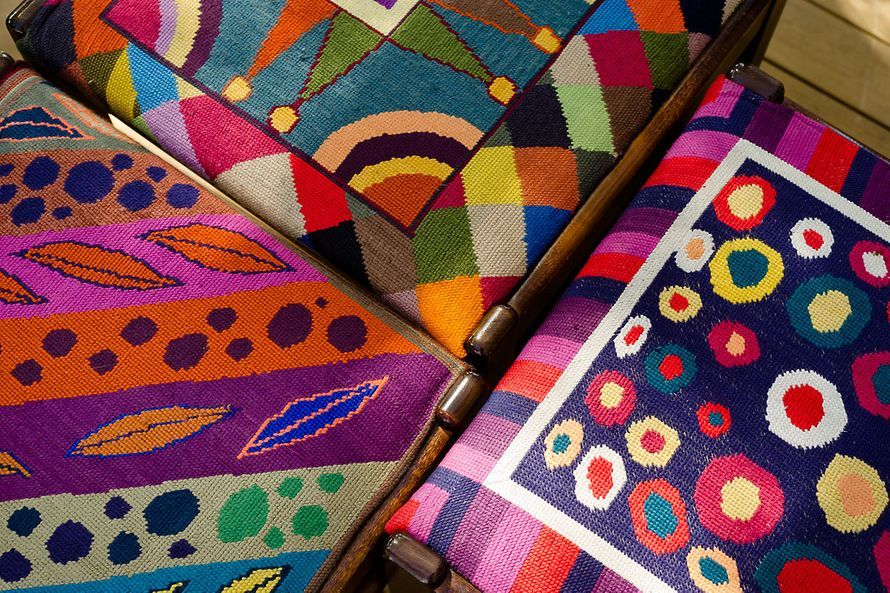 Ristipistotöitä Eija kertoo pitäneensä aina tylsän mummomaisina. Sitten hän keksi, että niitä voi tehdä vapaasti ilman mallia. Hän piirsi itse kuviot pohjakankaalle ja alkoit täyttää kuviota väreillä kuin värittäisi värityskirjaa. Tuloksena oli kymmenen erilaista puutuolin istuinosaa.