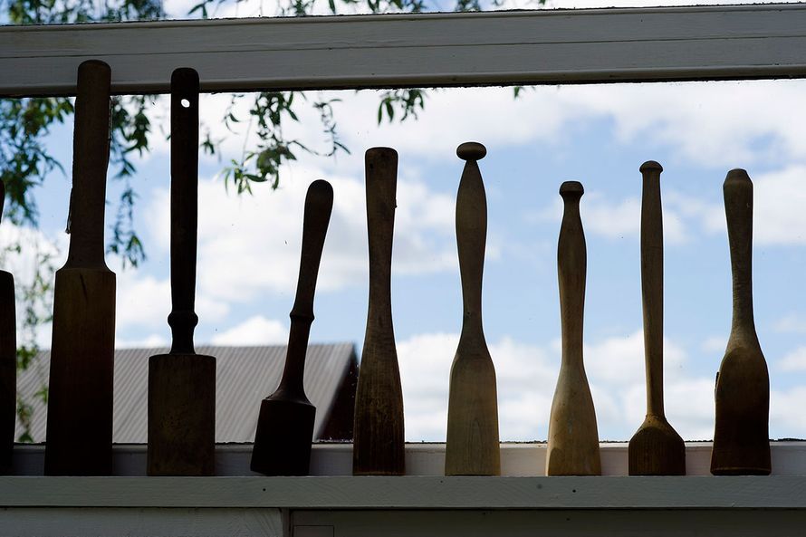 Eijalla on kotonaan Kurikassa komeat rivit puunukkeja ja puunuijia.