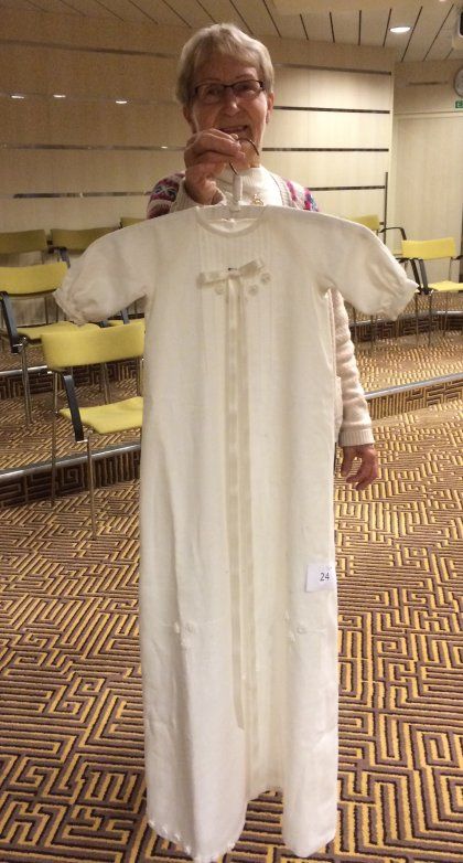 Kolmannen sijan sai Eila Koposen tekemä upea kastemekko, jossa on kastettu niin lapsia kuin lapsenlapsia.