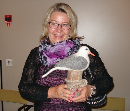 Toiseksi tuli Eija Koskisen Leevi-lokki, joka oli huovutettu! Se kuulemma vaihtaa paikkaa kotona aina säännöllisesti.