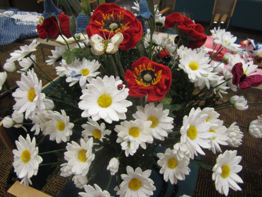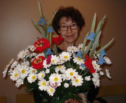 Voittajaksi selvisi Anne Poropatin taidokas virkattu kukkakimppu. Hän kertoo tehneensä kymmeniä ja kymmeniä erilaisia kukkia ja perhosia virkaten.
