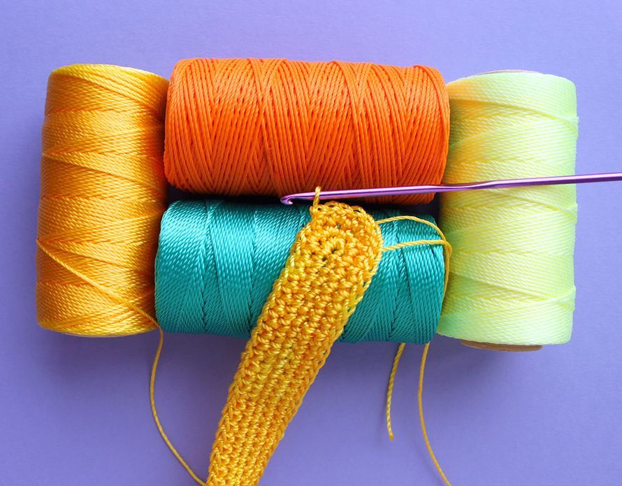 – Muurausnarujuttu alkoi yhtäkkiä ja paisui hurjasti. Idea tuntui hyvältä, koska haluan kokeilla uusia asioita ja pidän voimakkaista väreistä. Menin Biltemaan katsomaan, missä väreissä narua sai. Mielivärini pinkki oli loppu. Narua on helpompi virkata kuin luulisi, koska se on taipuisaa. Vaikeampi kuitenkin kuin lanka, koska se ei yhtään veny. Vielä en ole ehtinyt tehdä muuta kuin kassin, ja joitakin testitilkkuja.