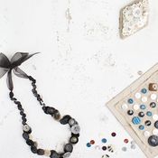- Mittaa 10 cm alaspäin ja solmi taas 3 kaksoistasosolmua, helmi, 3 kaksoistasosolmua.