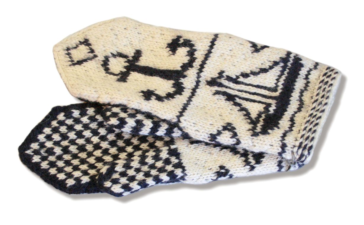 Ruotsinkielisen Uudenmaan lapasiin neulotaan hieno laivakuvio ankkureineen.