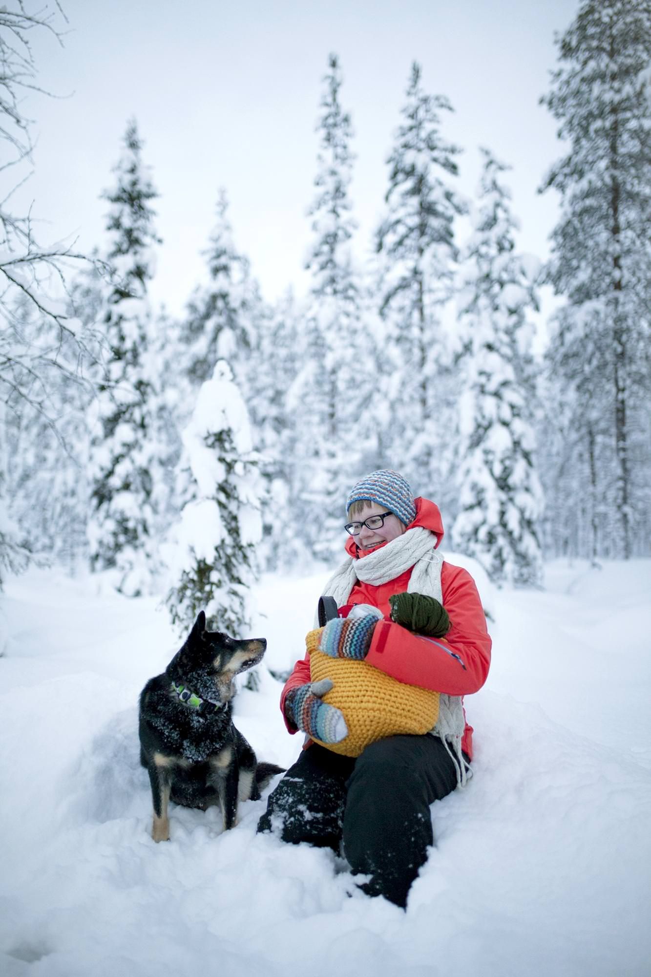 Tarulla on paljon materiaalia kotona, ja syytä onkin, sillä inspiraation iskiessä ei niin vain lähdetä kauppaan. Kirkonkylälle on 40 kilometriä. Sieltä saa jotain pientä, esimerkiksi villalankaa. Mutta kangaskauppaan Rovaniemelle on 130 kilometriä. Tarun Helsingissä asuva sisko lähettää hänelle usein lahjaksi lankoja ja tarvikkeita.