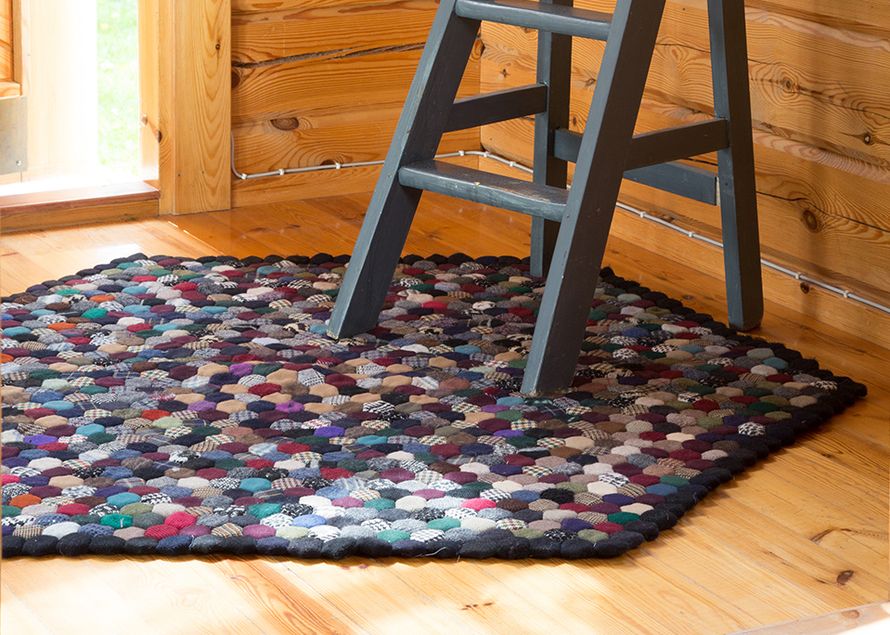 - maton päälle tulevat tilkut leikataan vanhoista villakangastakeista tai pestyistä, silitetyistä saman paksuisista vanhoista villavaatteista