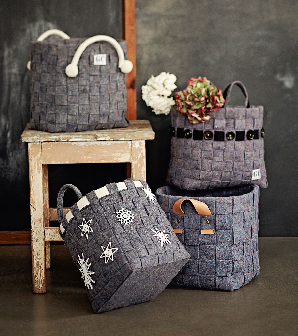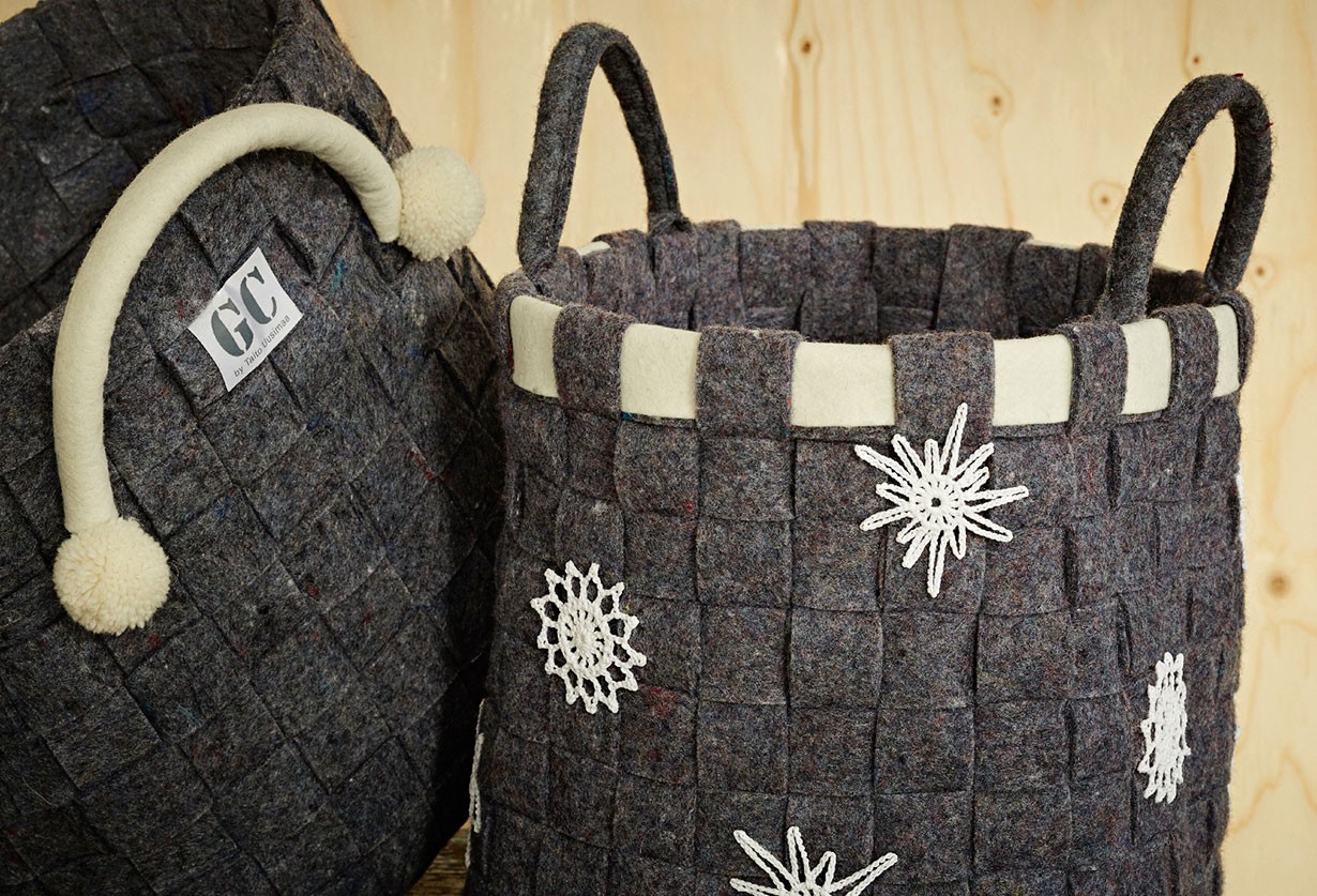 Puno kierrätyshuovasta hauska kori