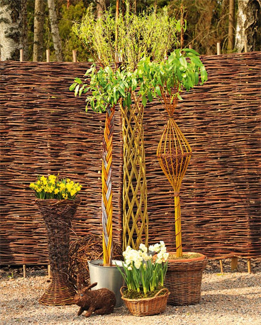 Paju kuuluu pääsiäiseen. Elävistä pajunoksista loihditaan pitkäikäisiä, hienoja ruukkupuita punomalla ja letittämällä.