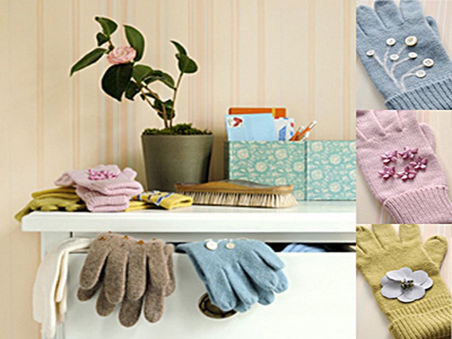 Ehosta tavallisia villasormikkaita napein, nauhoin ja helmin. Kaappien kätköistä löytyvillä pienillä aarteilla tuunaat niistä entistä ehommat.