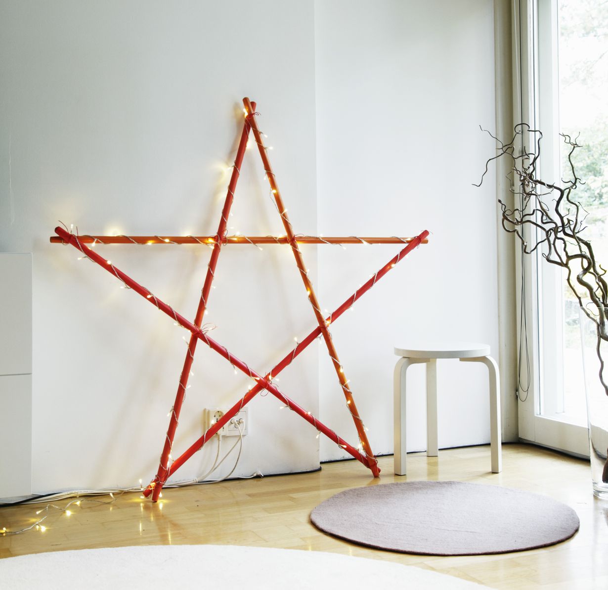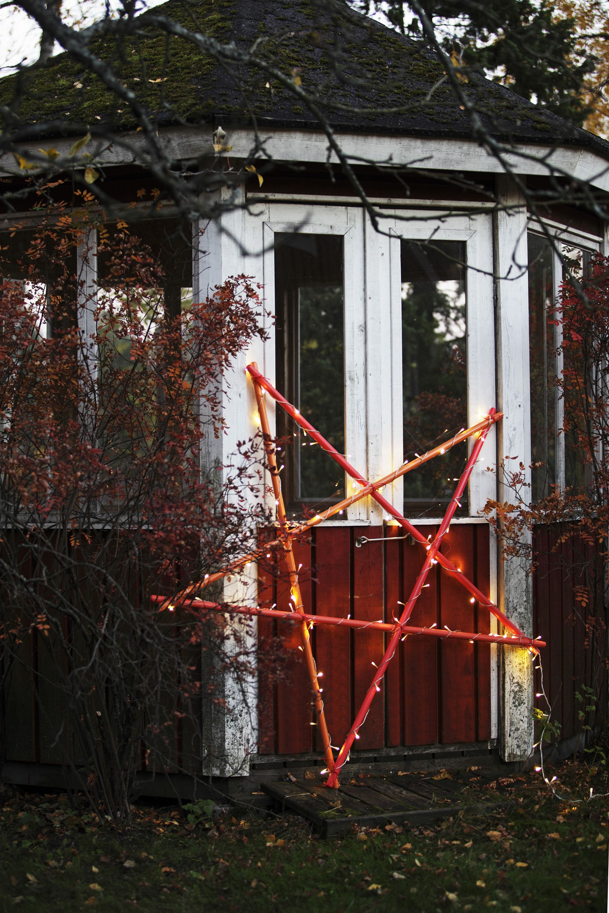 Pihalla tähden voi sijoittaa huvimajan portaille tai terassin kaidetta vasten.