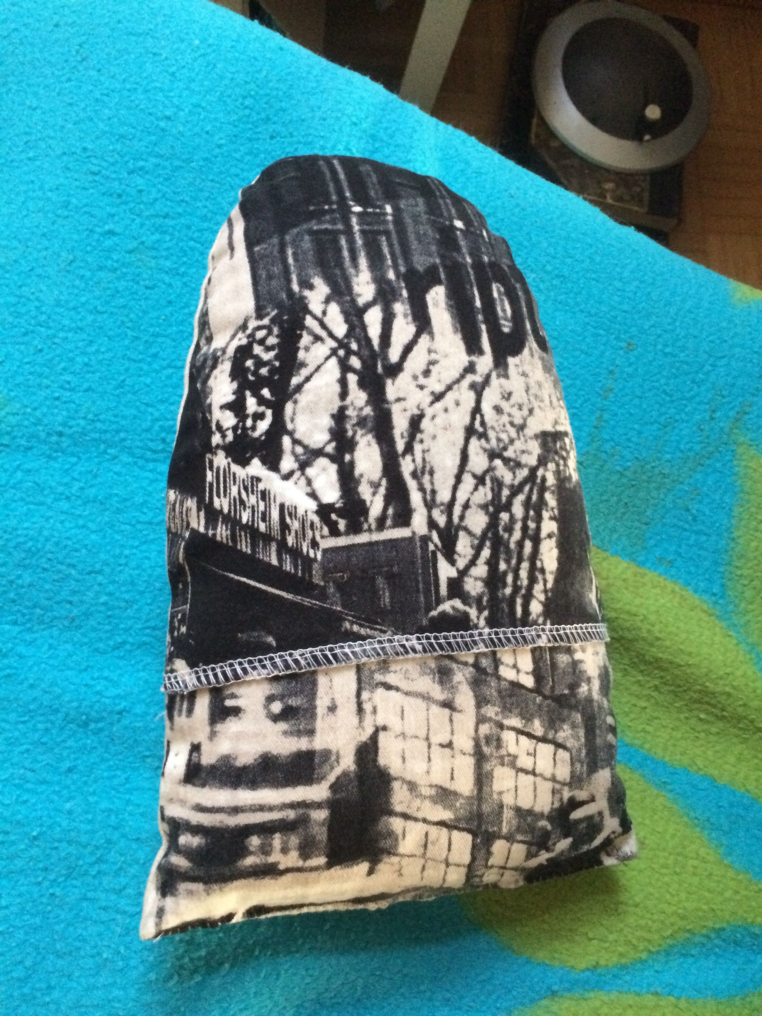 - Laita täytetty sisäpussi päällisen sisään. Ompele pohjan aukko kiinni käsin.