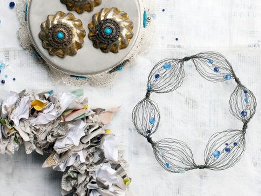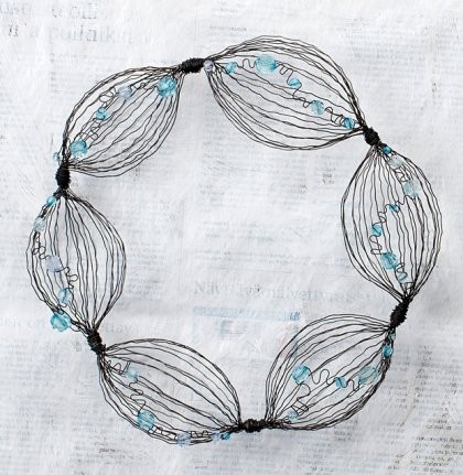 mutkille helmien väleissä ja kieputtele se kranssin ympärille.