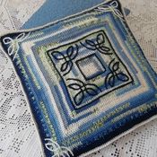 - Viimeistele tyynyliina pitsein, napein ja pitsikukkasin. Tulostettu kangas kestää käsinpesun.