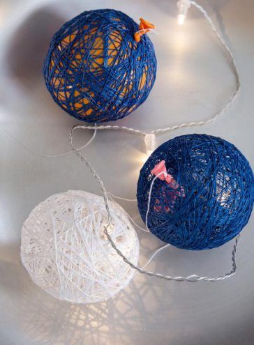 Loihdi hehkua syysiltaan! Kiepauta kepeitä palloja erilaisista langoista ja upota niiden sisään valosarjan pieniä lamppuja.