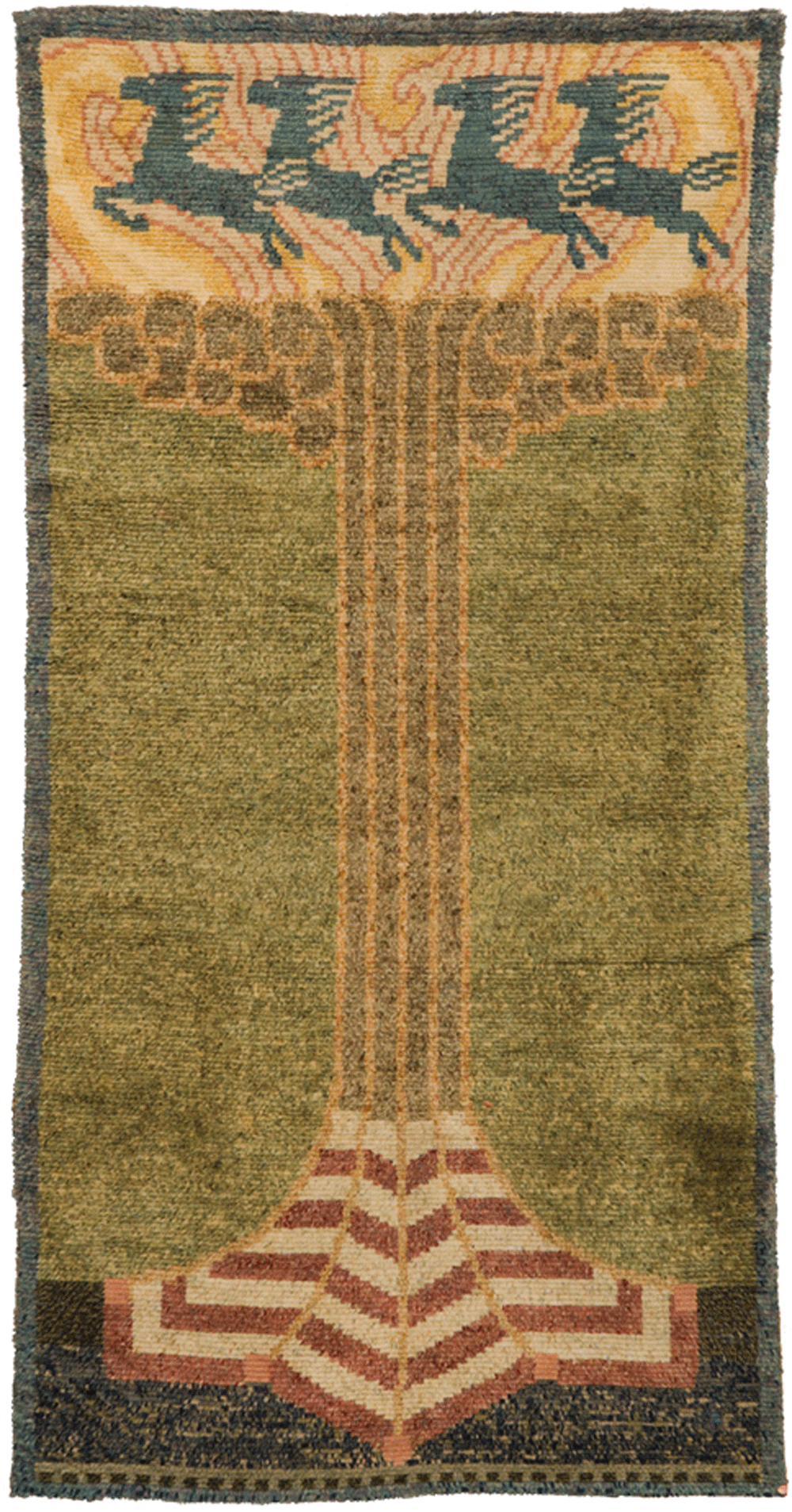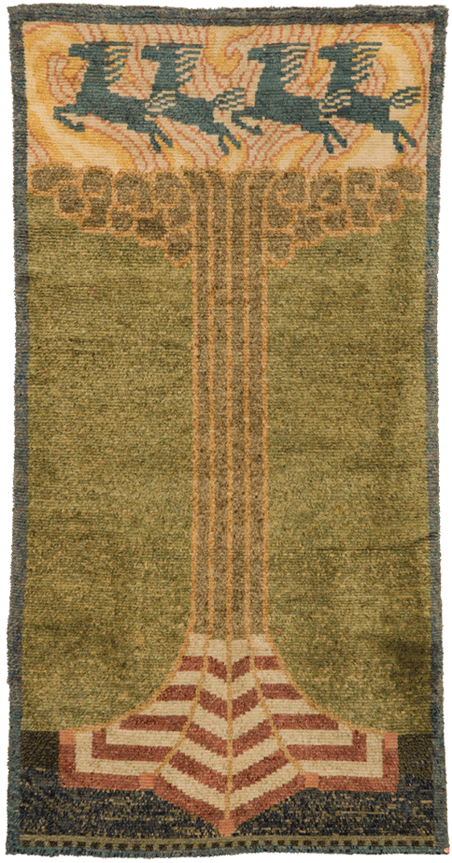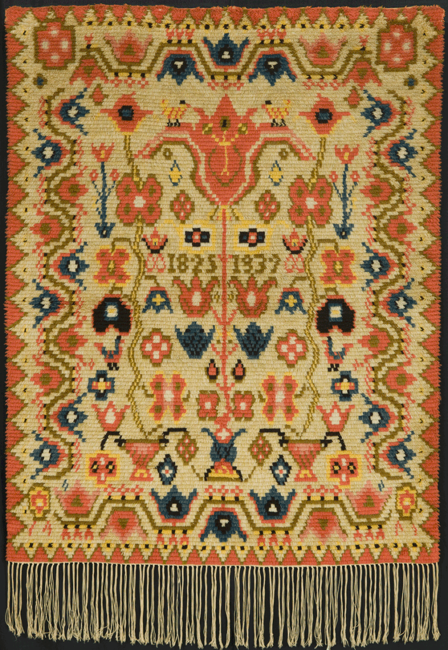 Suunnitteluvuosi 1906, kudottu 1900-luvun alkupuolella. Ryijy on todella iso, 360 x 190 cm.