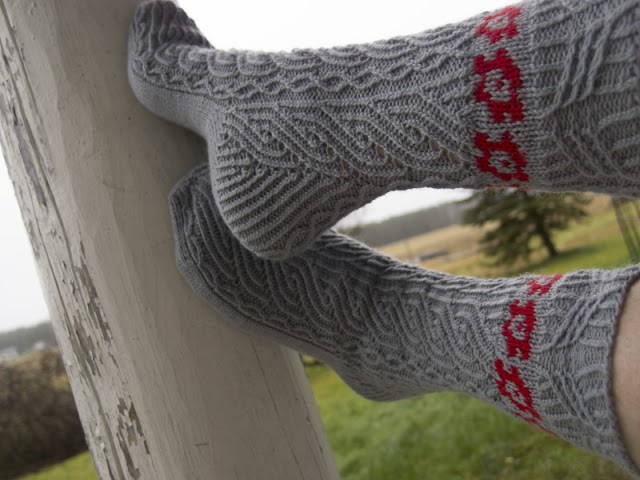 – Neulomisaikaa oli pari päivää ja sukat piti vielä saada kuvattua päivänvalossa. Sain sukat valmiiksi yömyöhällä ja seuraavana päivänä ehdin myös pingottaa ne ennen kuvaamista.