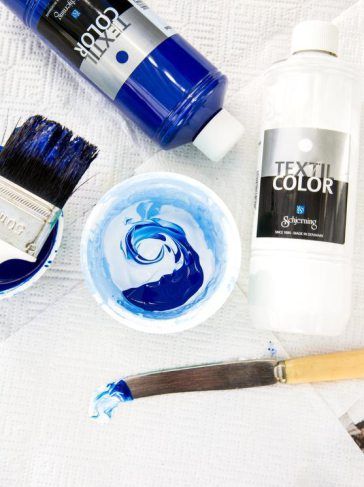- Tekstiilimaalia, valkoista ja sinistä (schjerningtextil color, Sinelli)