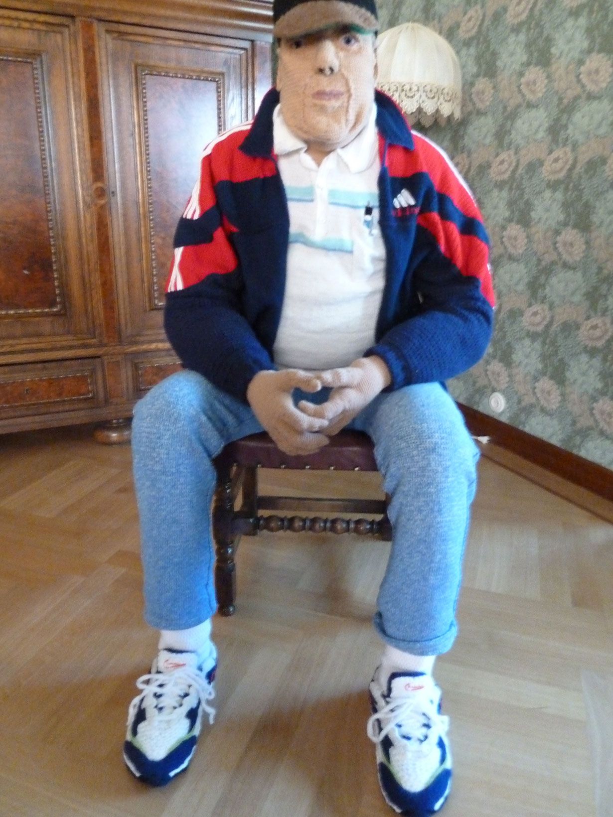 Virkkasin Pirkon nopeasti, kolmessa viikossa, ja ranteet ja etusormen nivelet olivatkin tosi kipeinä. Nyt käytän ihmishahmoon aikaa muutaman kuukauden.