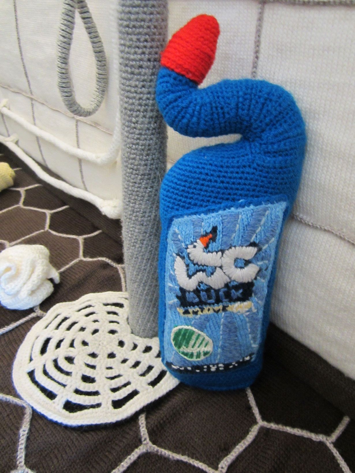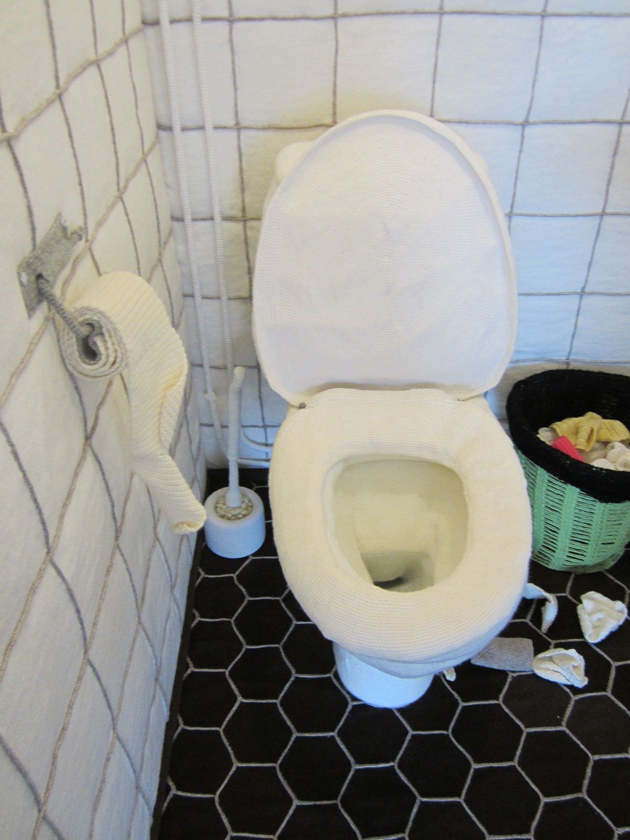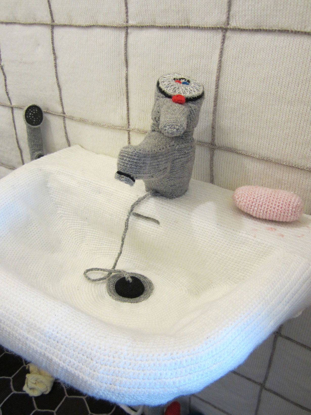 Virkattujen ihmishahmojen lisäksi teen teoksia arjen aiheista. Yksittäiset pienet ilmiöt kertovat paljon maailmasta. Viimeisin työni on virkattu jatkojohto Hyvää energiaa. Virkkaaminen on aktiivinen mutta hidas tapa käsitellä maailmaa.