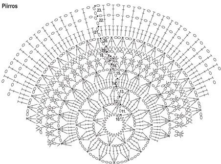 10. krs: (ks. piirros) 1 kjs, virkkaa 1 ks jokaiseen s:aan = 24 ks. Virkkaa vielä kerrokset 11–22 ja toista sitten piirroksen 23. krs