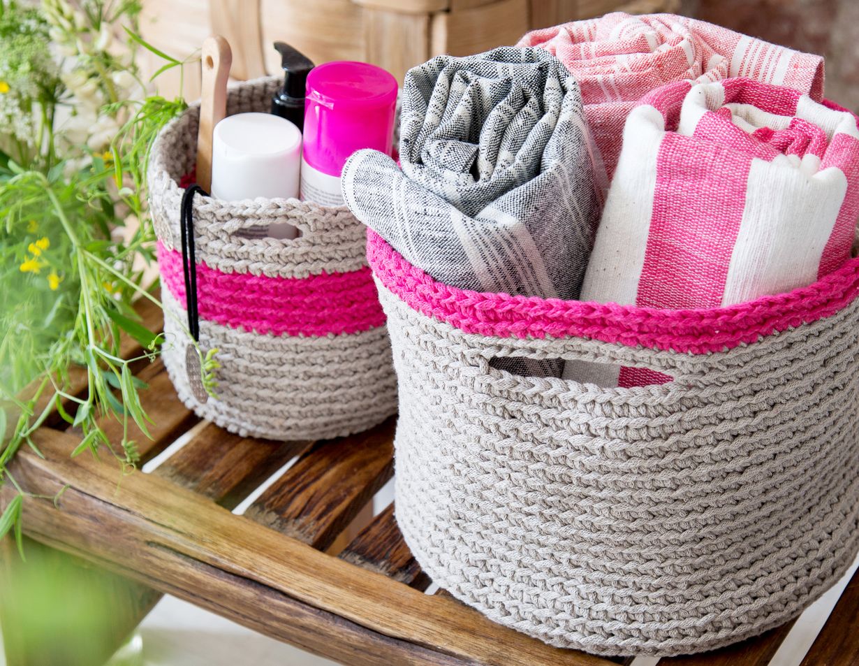 Virkkaa näppärät korit saunatarvikkeille