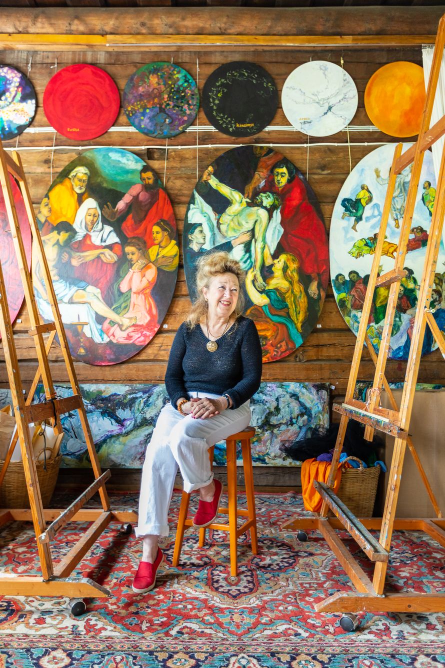 – Lämmitän uunia ja maalaan mieluiten sen kyljessä. Uunin lähellä on parhaat energiat, Oili Marskisanoo.