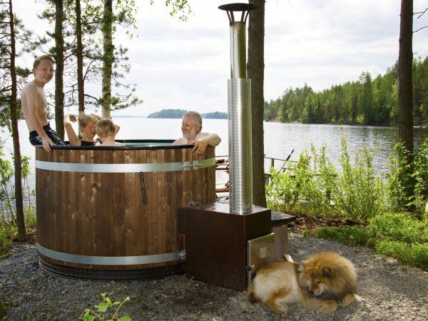 Kylpytynnyrissä loikoilu on kaikenikäisten suosikkipuuhaa. Paljussa on kiva istua, jutella ja ihailla maisemia. Kylmässä järvessä pulahtamisen jälkeen on lämpimään paljuun palaaminen ihanaa.