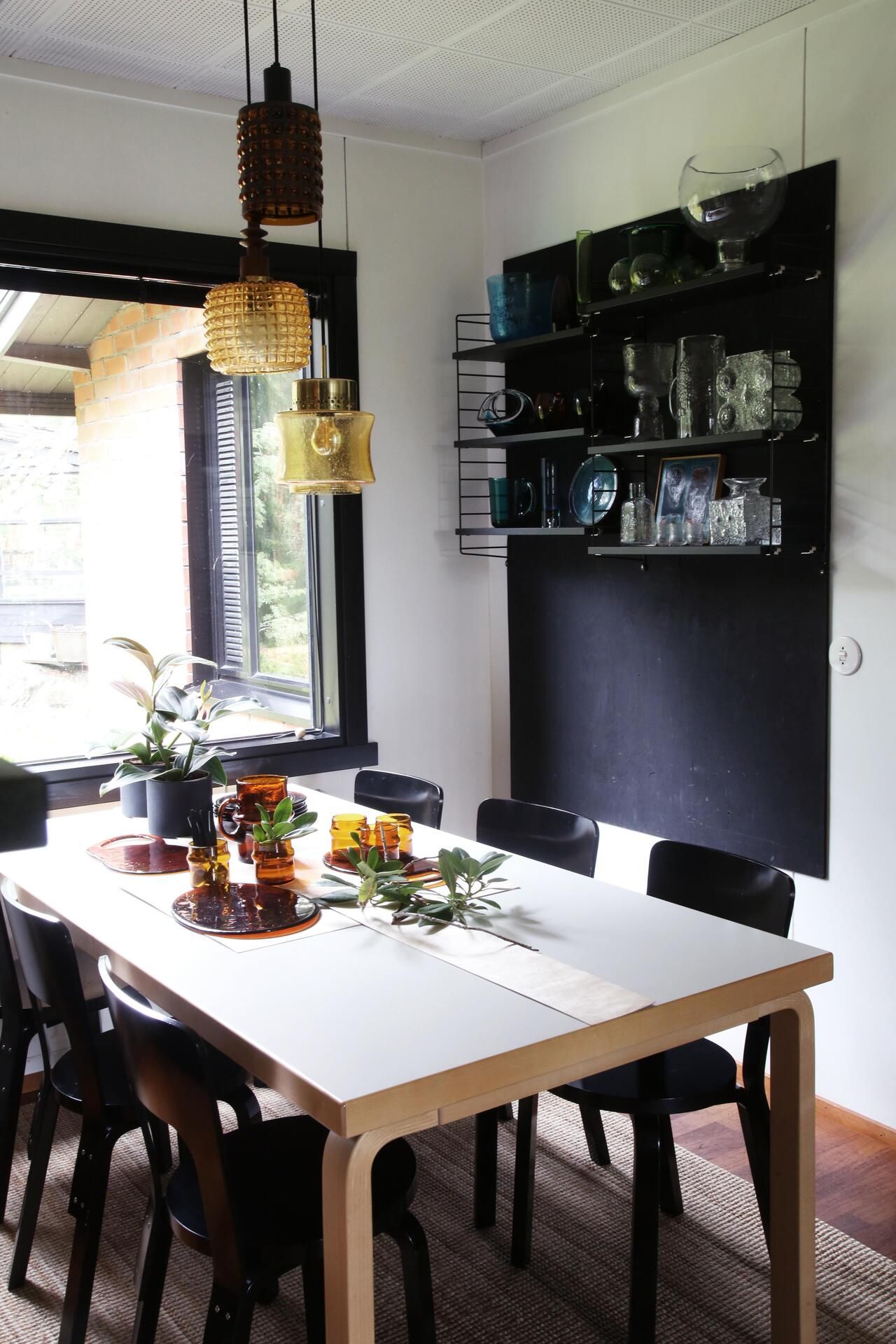 Sisustukseen Annina on lisännyt kontrastiväriksi mustaa. Yhdessä ruskeiden ja vihreiden sävyjen kanssa se tuo sisustuksen tähän päivään.