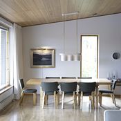 – Uusimme remontissa lattian ja keittiön. Lisäksi halusin seinille talon henkeen sopivat lastulevyt, Annina kertoo.