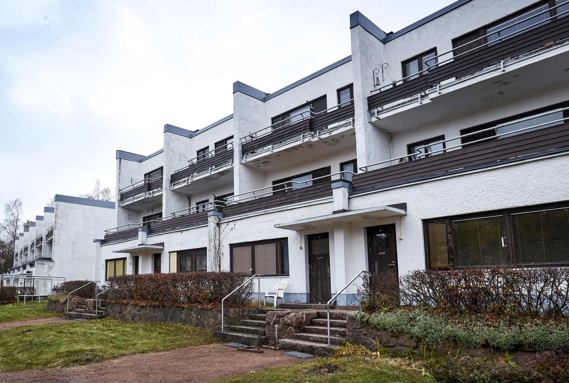 Huoneisto oli Alvar Aallon suunnitteleman terassitalo Päivölän pohjakerroksessa.
