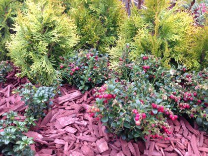 Syksy-laiturin istutuksessa on muun muassa puolukoita. Niitä ei tosin kannata vielä napsia suuhun, sillä marjat ovat viimevuotisia. Toinen puolukkalajike on lupaavasti nupulla. Kasvit on valittu istutukseen upeiden syysväriensä perusteella.
