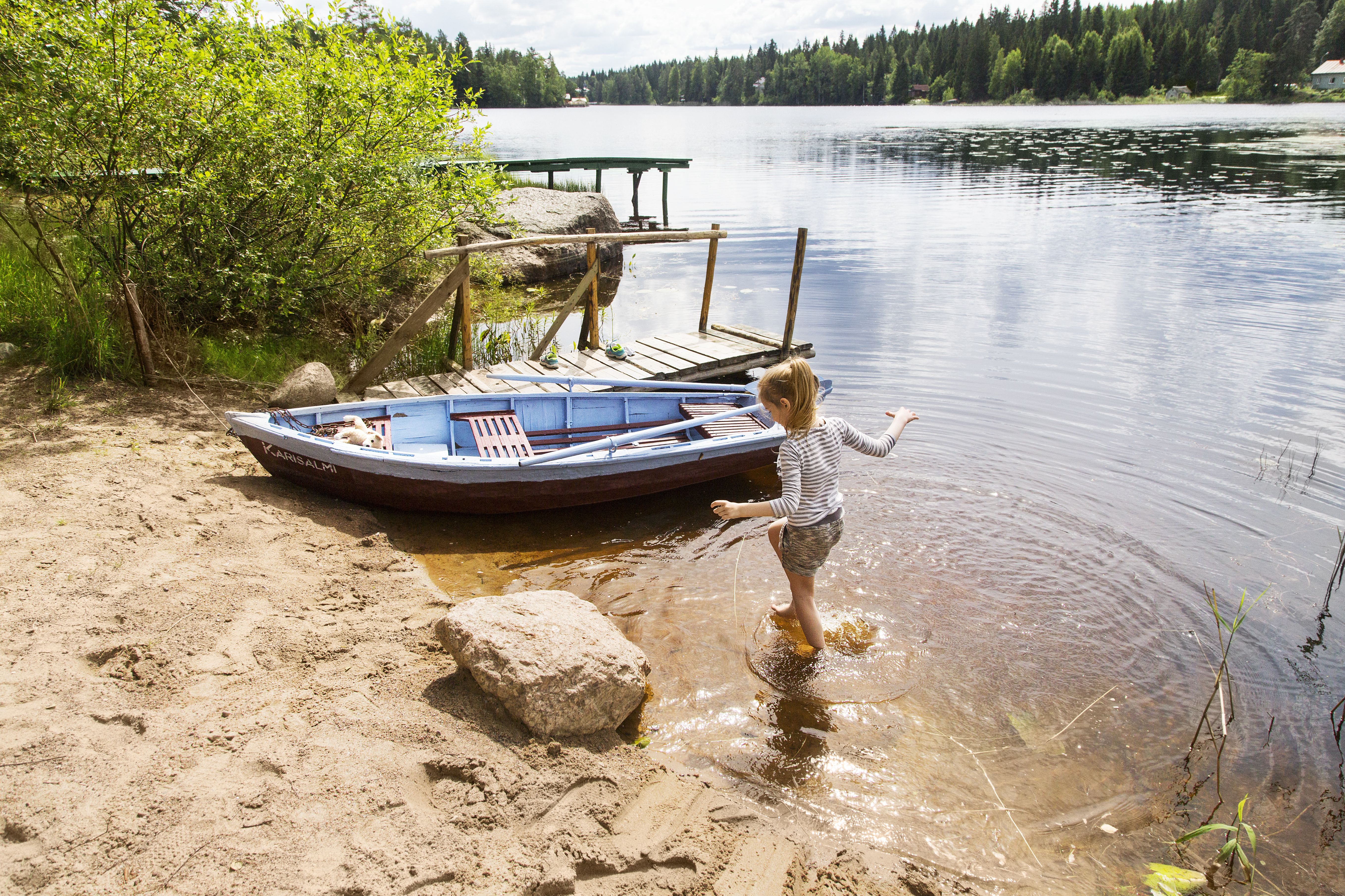– Vanhat ihmiset kutsuivat tätä Karisalmeksi. Minulla on täältä ihanat lapsuusmuistot. Leikittiin, uitiin, käytiin marjassa ja kävin kalassa isän kanssa. Vanhempani olivat töissä, ja kesäisin olin täällä baabushkan kanssa. Vanhemmat tulivat viikonloppuisin ja odotin sitä kovasti. He toivat tullessaan ruokaa ja herkkuja.