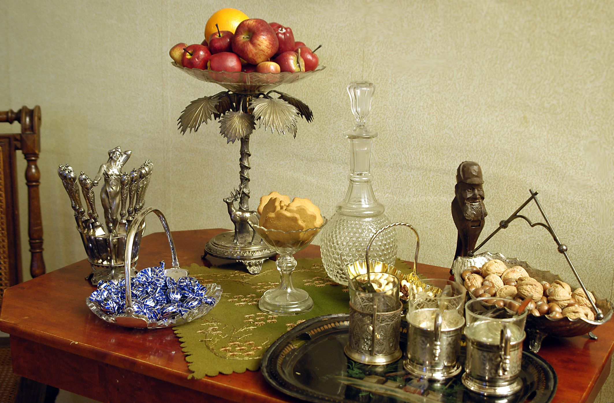 Käy kesken joulukuun kiireiden vetämässä henkeä Lappeenrannassa jouluasuun puetussa Wolkoffin talossa. Ruokasalin kattoon asti ulottuva joulukuusi on koristeltu samoilla koristeilla kuin Wolkoffin perheen talossa asuessa. Salin pöydälle on katettu juhlavat kahvikupit, hedelmät, pähkinät ja tryffelit.