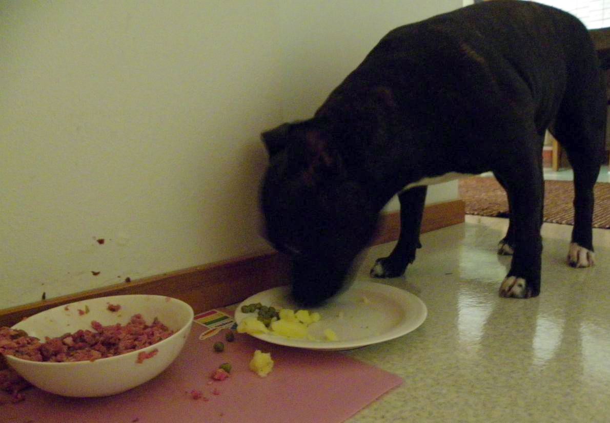 4-vuotias staffineito Lyyli on yksi heistä. Omistaja Noora Hautakoski kertoo hymyillen viime joulun ateriasta, jonka hän valmisti koiralleen:
