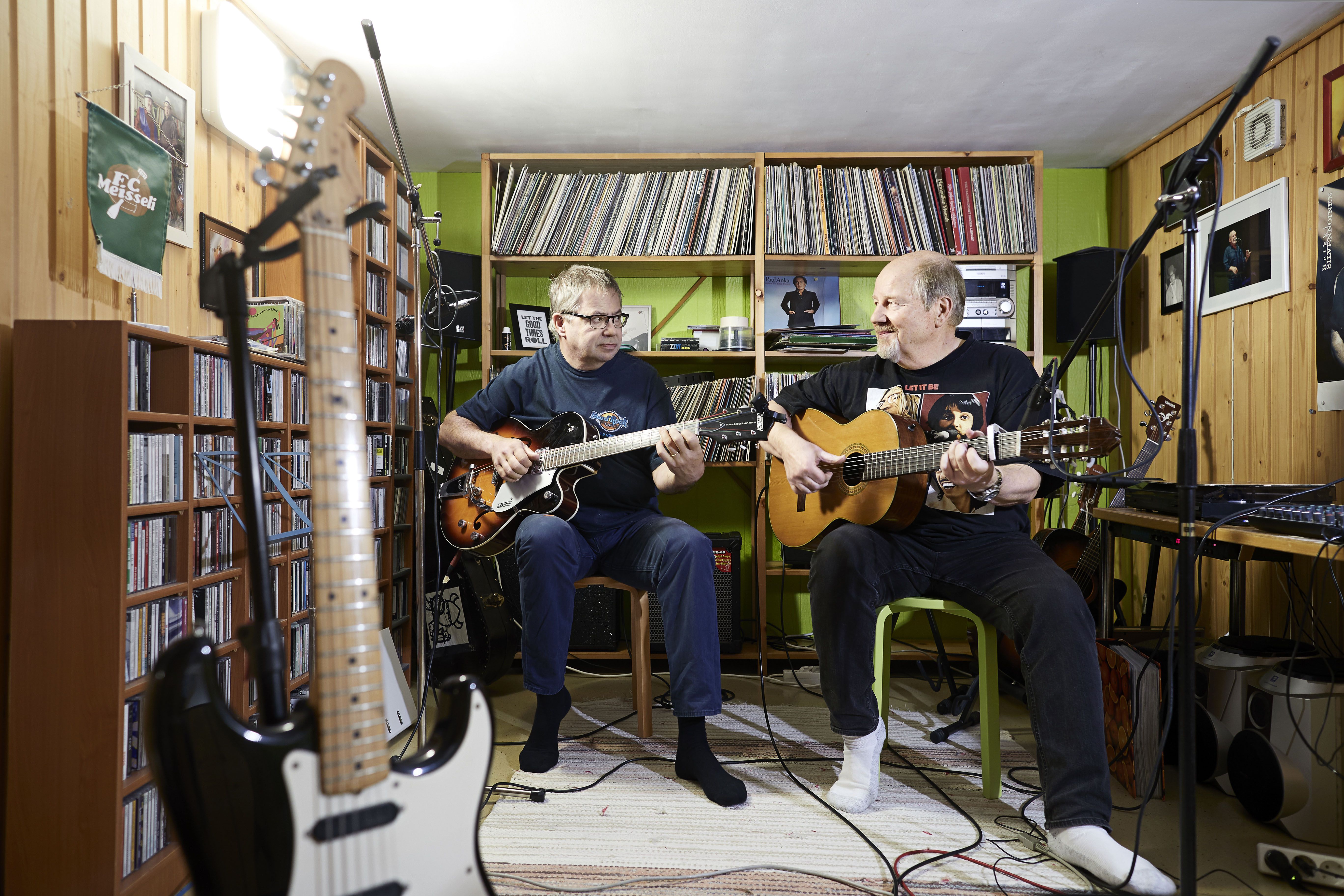 Helsinkiläisen Jukka Linkoheimon kellarissa raikaa usein musiikki, joko levysoittimesta tai itse soitettuna. Usein soittokaverina on vanha ystävä Heikki Chydenius. Oman soittotilan paras puoli on, että soittimet ja vahvistimet ovat aina soittovalmiina – ja maan alla saa luukuttaa kunnolla.