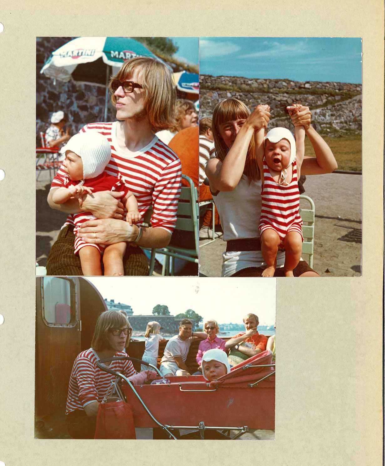 Kun katsoo Kaija ja Harri Sarhan kuvia vuodelta 1971, voisi kuvan kuvitella otetun nyt Käpylän lippakioskilla tai Kallion kulmilla. Niin trendikkäältä nuoripari näyttää hoitaessaan Saku-vauvaa. Lasit, kampaus ja vaatteet, kaikki kuvat voisivat olla nyt otettu.