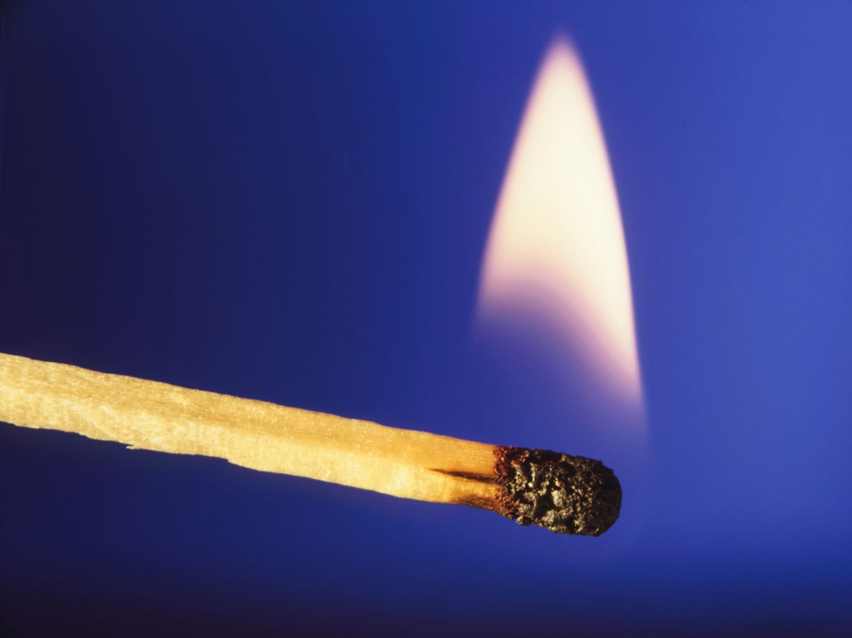 Nykytikun pää on kolmasti kastettu: ensin hehkunestoaineeseen, sitten palamista edistävään steariiniin ja lopulta rikittömään raapaisumassaan.