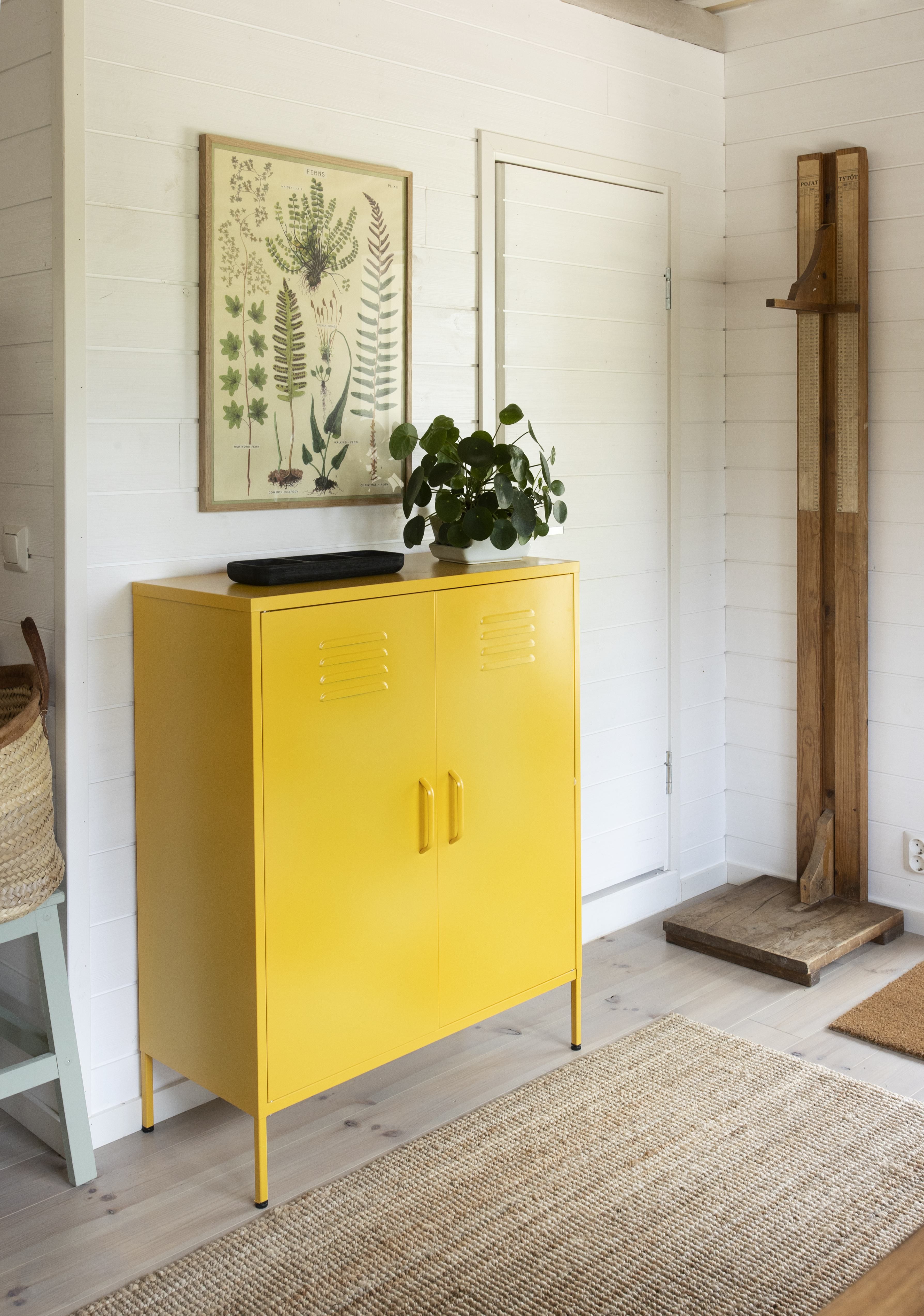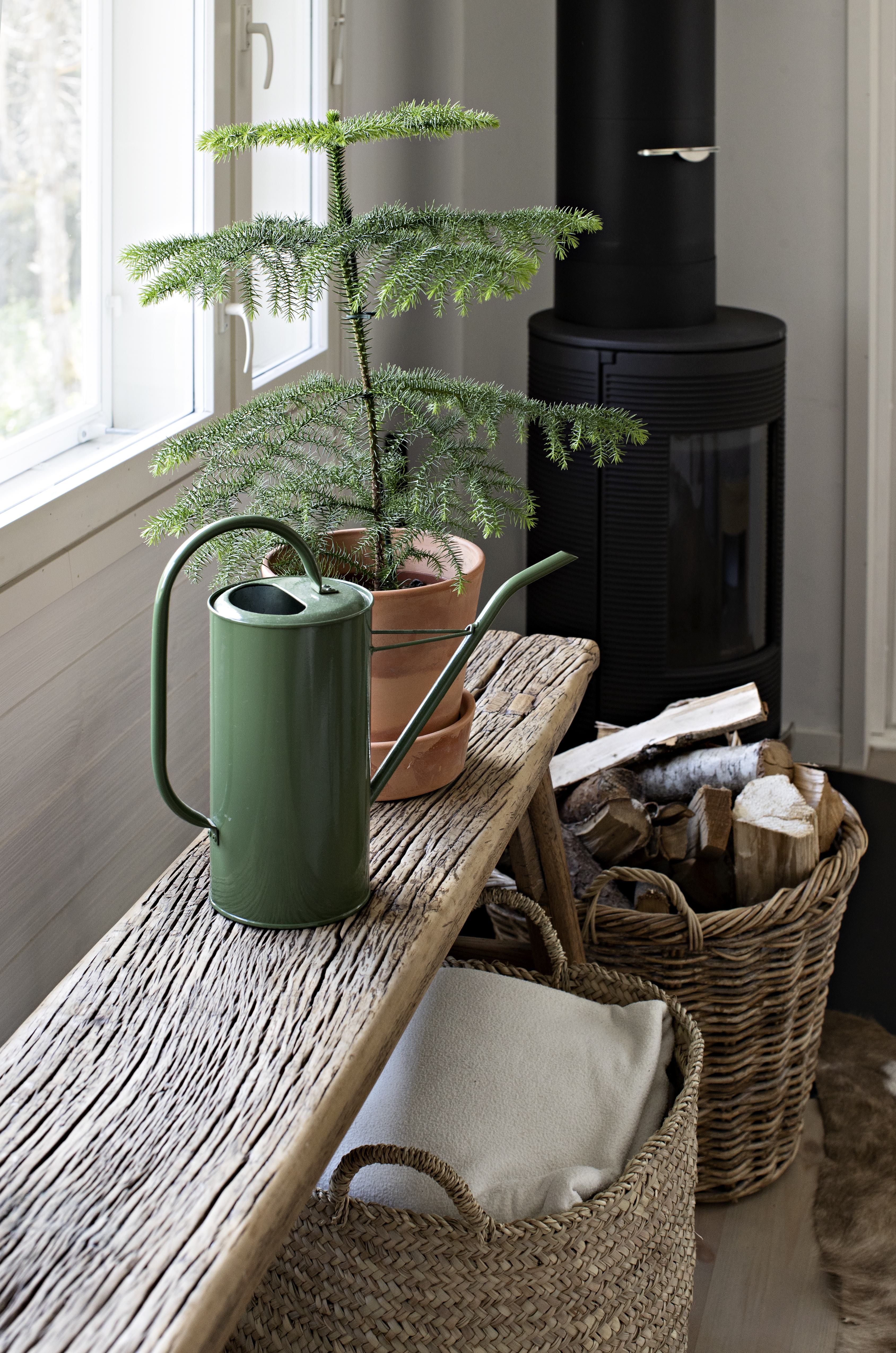 Mökin värit syntyivät sammalenvihreän kastelukannun ympärille. Sen kanssa sopii lempivärini keltainen.