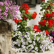Vähitellen mielessäni kypsyi ajatus siitä, että parveke voisi olla pieni puutarha. Pelargoniat ja muratit tulivat ilmojen lämmetessä parvekkeelle.