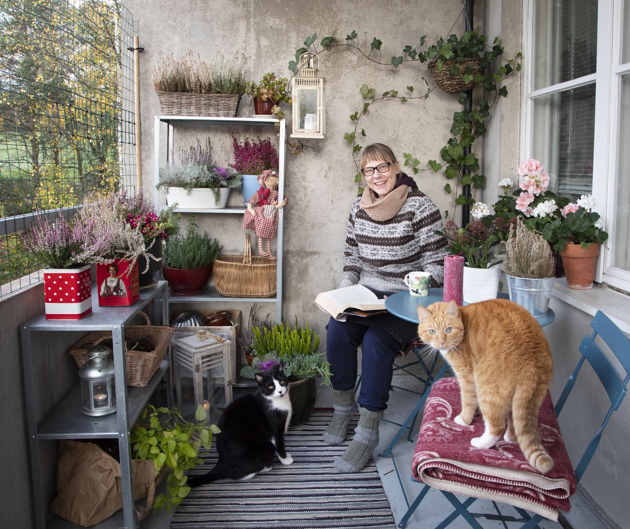 Tamperelainen Hanna-Kaisa Hartala, 45, muutti uuteen kotiin. Sen parveke osoittautui oikeaksi keitaaksi.