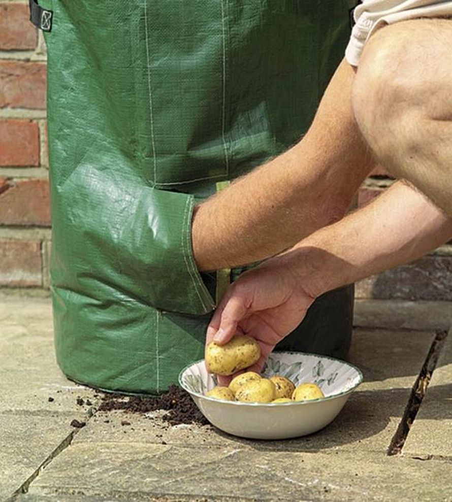 Kassiin tai ämpäriin kannattaa laittaa kolme mukulaa. Kassin alhaalla olevista taskuista on kätevää korjata satoa eikä kerralla tarvitse kerralla nostaa koko satoa. Samalla peruna innostuu tekemään lisää uusia mukuloita.