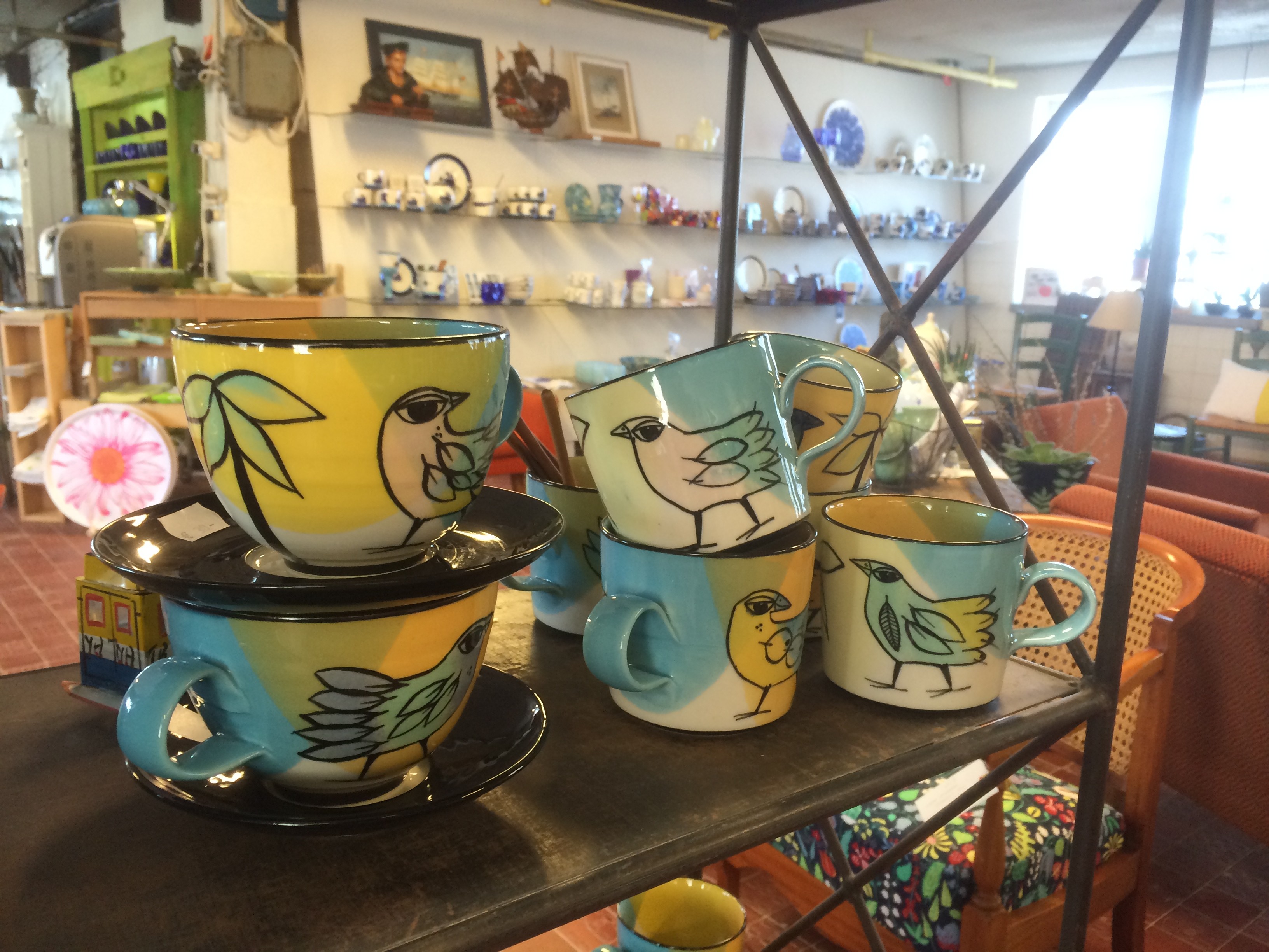 Maarianhaminassa käyvän kannattaa piipahtaa Judyn työpaja-myymälässä vaikka kahvilla. Judyn keramiikka on ihanan värikylläistä: turkoosia, keltaista ja limeä.