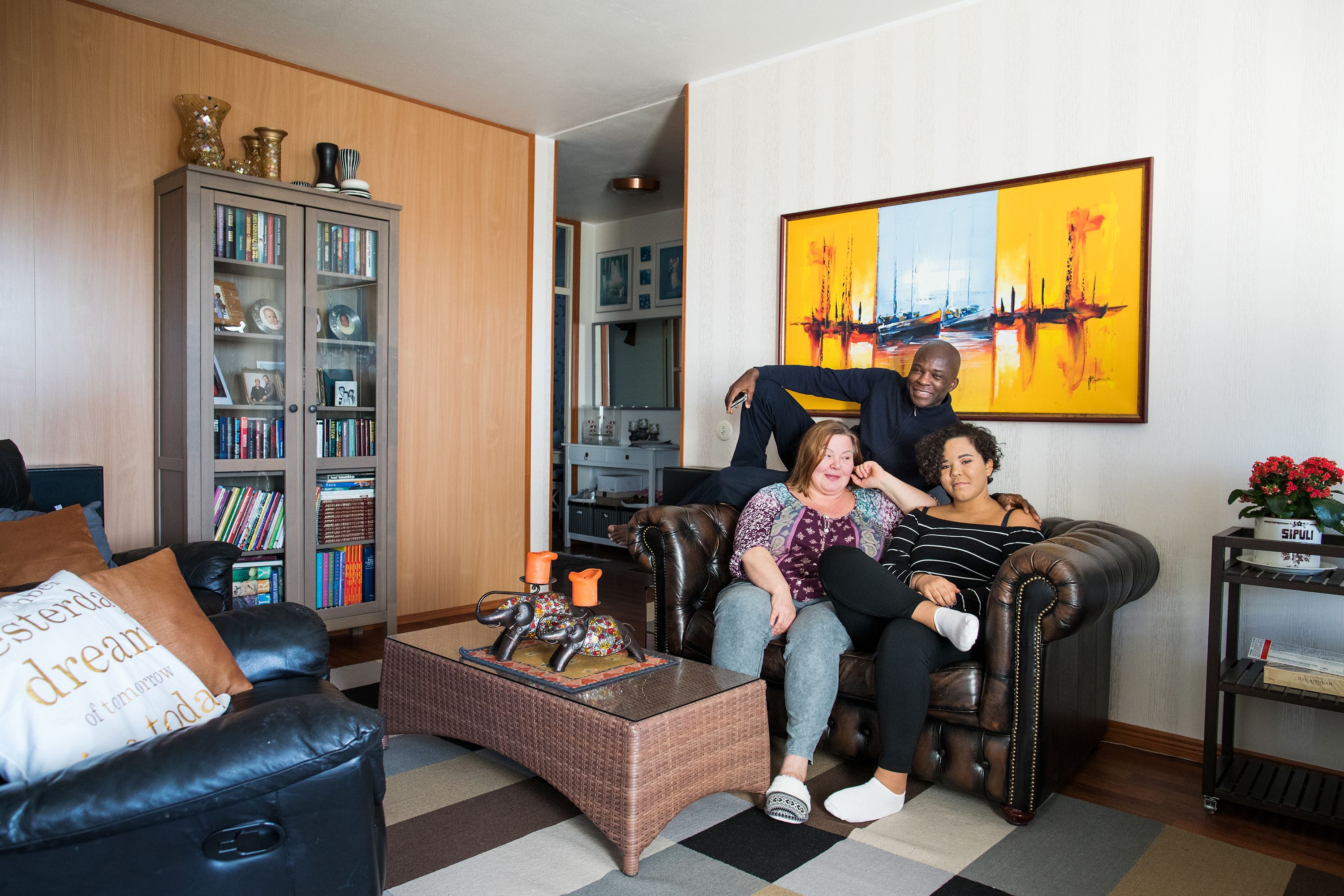 – Me olemme äidin kanssa niin suomalaisia, pidämme hiljaisuudesta. Mutta kun papa tulee kotiin, hän avaa telkkarin ja radion, laittaa toisinaan levynkin soimaan ja alkaa huutaa puhelimeen. Hän tykkää ihmisistä, kuhinasta ja metelistä ympärillään, koska tottunut sellaiseen kotimaassaan Angolassa. Argghhh, Doris nauraa.
