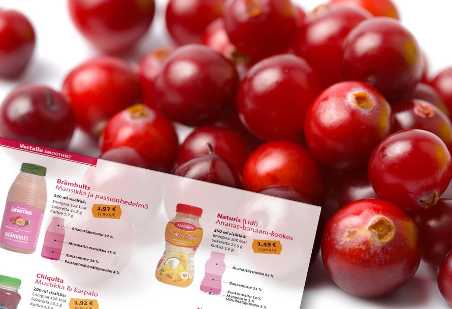 Smoothie-nimellä myytävissä tuotteissa lähes tai jopa yli puolet sisällöstä on usein ananas-, omena- tai rypäletäysmehua. Sen sijaan tuotenimessä mainittua marjaa tai hedelmää on usein vain muutama prosentti.