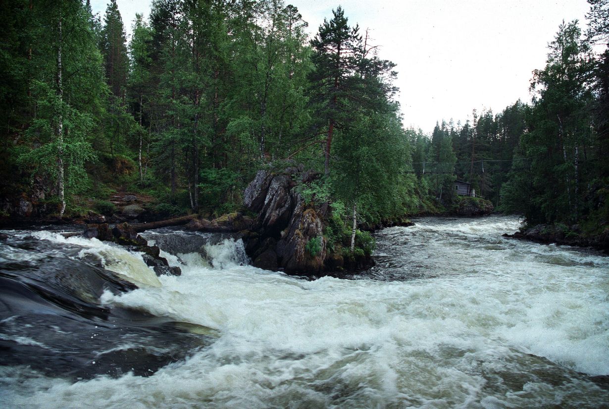 Aamulla uimme Oulankajoessa, joka virtaa vieressä vuolaana. Älyämme jättää säilykepurkit kämpälle lahjaksi jollekulle nälkäiselle. Kuivamuona riittää meille.