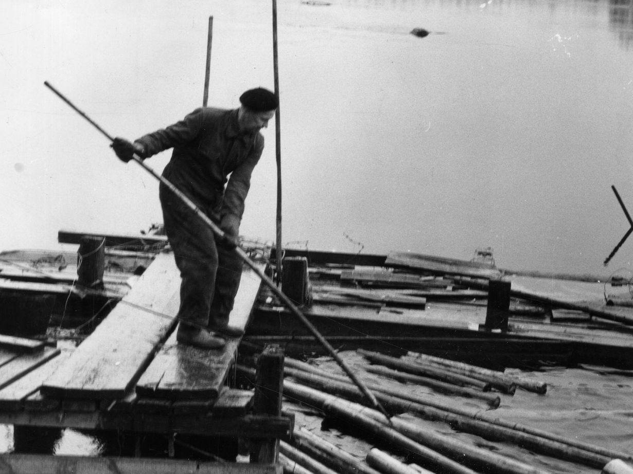 "Ensimmäinen viikko meni tutustumisessa jätkiin, niihin jermuihin. Puuta oli jokitörmät aivan valtoimenaan. Suomalaisten tehtävä oli asentaa jokeen puomit ja ohjurit."