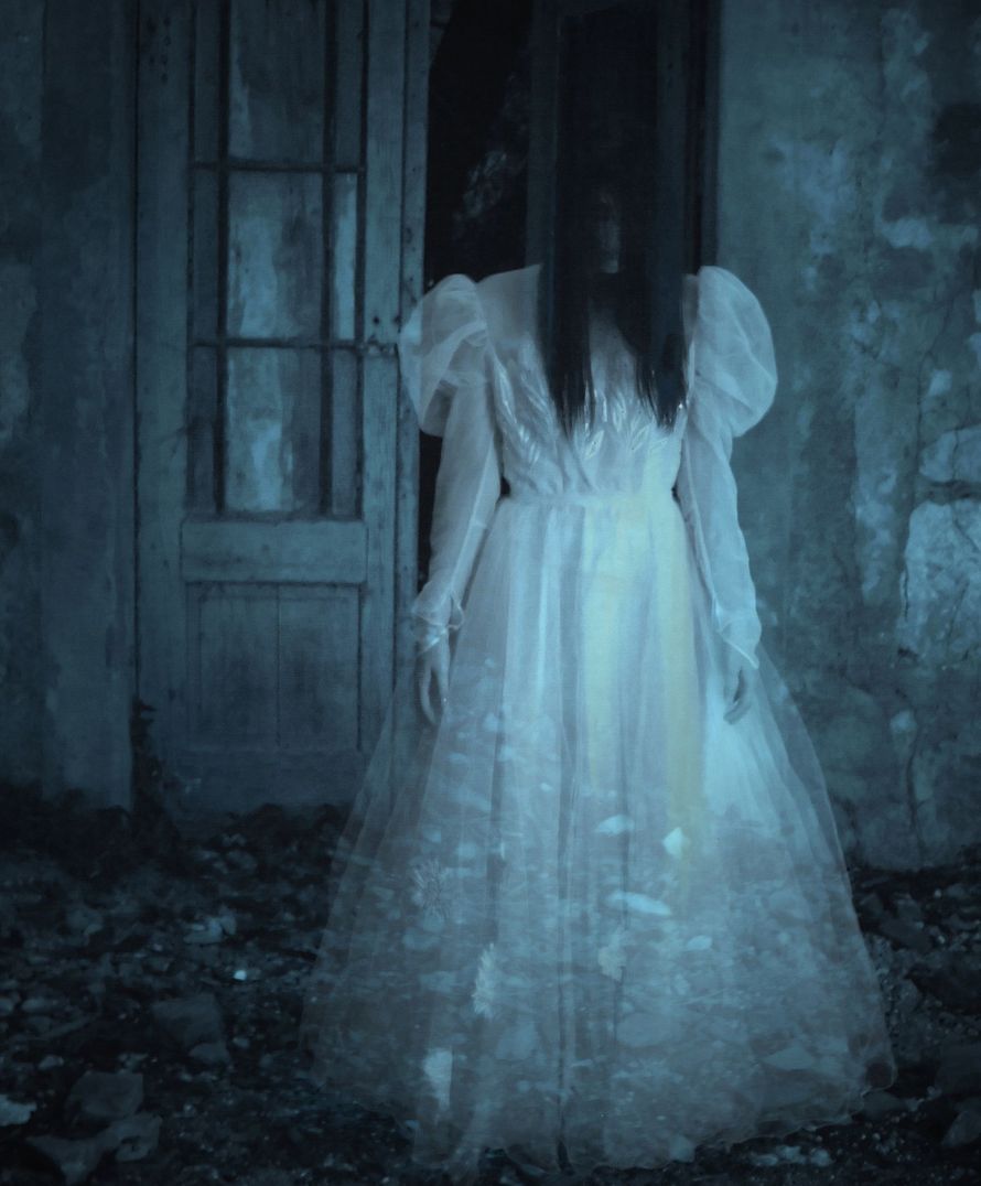 Olimme asuneet viikon verran talossa, kun heräsin keskellä yötä siihen, että tuntui aivan kuin joku tuijottaisi minua. Käännyin ympäri, ja sänkyni vieressä seisoi vanha nainen kumartuneena puoleeni. Hän katsoi minua ihan kuin tutkailevasti. Säikähdin ja suljin silmäni ja ajattelin, ettei tämä voi olla totta. Kun avasin silmäni, nainen oli kadonnut.