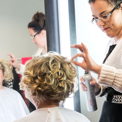 Kampaus kohenee tyvenkohotustuottein ja föönaamalla.